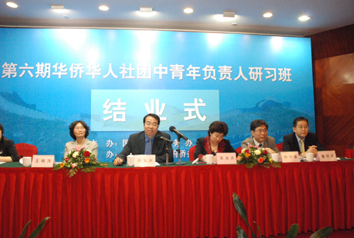 結(jié)業(yè)式前,許又聲與全體學(xué)員舉行了座談交流。來(lái)自北美洲、南太平洋地區(qū)9個(gè)國(guó)家和地區(qū)的48位僑團(tuán)中青年負(fù)責(zé)人圍繞“如何展示中國(guó)僑民新形象,為祖(籍)國(guó)增光添彩”這一主題進(jìn)行了深入而熱烈的討論,就進(jìn)一步融入主流社會(huì)、增進(jìn)與其他族裔溝通、關(guān)心和參與住在國(guó)政治生活、加強(qiáng)僑胞文明禮貌教育、促進(jìn)僑胞內(nèi)部團(tuán)結(jié)、共同建設(shè)和諧僑社等建言獻(xiàn)策。