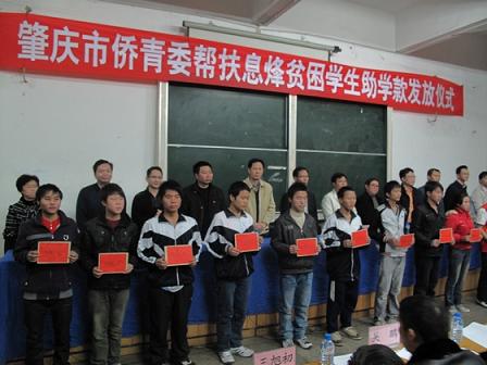 中新網(wǎng)11月27日電 據(jù)貴陽市僑聯(lián)消息,11月24日,在貴州省、貴陽市僑聯(lián)的牽引下,肇慶市僑青委港澳青年企業(yè)家們給息烽一中楊大英、劉啟麗等50名高中貧困生每人帶來了500元助學(xué)款,這對(duì)于他們的學(xué)習(xí)和生活來說無疑是“雪中送炭”。