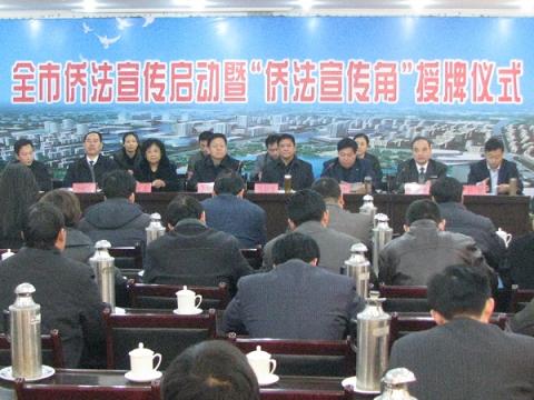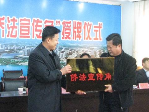 會議對全市僑法宣傳工作進行了部署,并向市中區(qū)榮華里社區(qū)和光明園社區(qū)進行了“全國僑務系統(tǒng)五五普法僑法宣傳角”授牌。