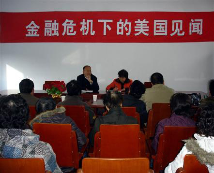 中新網(wǎng)12月10日電 據(jù)連云港市僑聯(lián)消息,近日,連云港市僑聯(lián)邀請剛從美國探親歸來的連云港市新華僑華人、留學人員眷屬聯(lián)誼會副會長蘆旭,作了一場《金融危機下的美國見聞》專題講座。各縣區(qū)僑聯(lián)負責人,市僑聯(lián)機關干部及歸僑僑眷代表50余人參加。