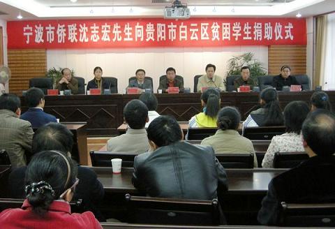 據(jù)悉,沈志宏系留學(xué)歸國人員,浙江前程投資股份有限公司董事長。當(dāng)他通過寧波市僑聯(lián)了解到貴陽市白云區(qū)有一部分品學(xué)兼優(yōu)的農(nóng)村高中生因家庭困難上不起學(xué)時,沈先生當(dāng)即表示愿意出錢資助這些學(xué)生上學(xué)。他認(rèn)為,孩子是一個家庭的寄托,也是一個國家的未來,一個民族的希望。出一點(diǎn)錢,盡一點(diǎn)綿薄之力,能讓這些家庭經(jīng)濟(jì)困難的學(xué)生充分感受到社會的溫暖和關(guān)愛,讓他們不因貧困而跌倒在人生的起跑線上,是一個僑界企業(yè)家應(yīng)盡的社會責(zé)任。