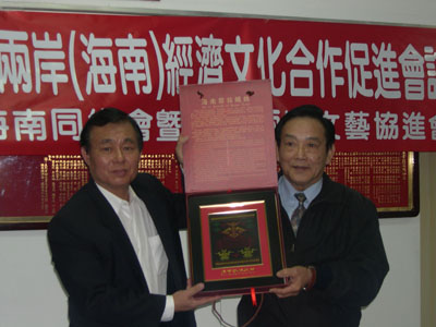臺(tái)北市海南同鄉(xiāng)會(huì)理事長(zhǎng)符子正親自會(huì)見(jiàn)并組織和主持了迎接訪問(wèn)團(tuán)一行的座談會(huì),賓主雙方互贈(zèng)禮品。