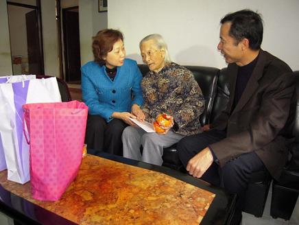 上午9時許,馬逸麗在汕頭市外僑局有關(guān)負責(zé)人、濠江區(qū)外僑局和達濠街道等部門領(lǐng)導(dǎo)的陪同下,來到達濠街道赤港居委社區(qū),探望、慰問兒孫在美國的113歲僑眷老壽星陳肖存敬女士。馬逸麗詳細地詢問老人的生活起居等情況,并向她送上慰問金和慰問品,祝愿她在新的一年里身體更加健康,吉祥如意。接著,馬逸麗等來到同一社區(qū)的102歲僑眷陳牡丹女士家中,探望、慰問這位子女在加拿大的“百歲老人”,送去慰問金和慰問品,并祝她新年身體健康,萬事如意。隨后又來到葛洲居委社區(qū),慰問91歲越南歸僑、中共黨員張秀德。送上慰問金和慰問品。