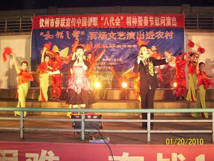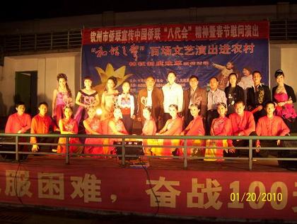 欽州市粵劇團(tuán)共演出舞蹈、小品、獨(dú)唱等20多個(gè)節(jié)目,內(nèi)容豐富多彩,謳歌了欽州改革開(kāi)放成就,有鮮明地方特色。觀看群眾達(dá)到3000多人。