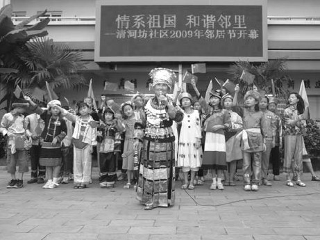 這次澳門(mén)回歸10周年,潘曼霞夫婦倆再次受到了邀請(qǐng),潘曼霞由大女兒陪同,參加澳門(mén)十周年慶典。這次,老人再次帶去了嶄新的28套民族服裝。當(dāng)澳門(mén)勞工子弟學(xué)校的學(xué)生們?cè)俅未┥吓寺夹聨?lái)的28套民族服裝,為老人載歌載舞,歡迎老人時(shí),老人也很開(kāi)心。