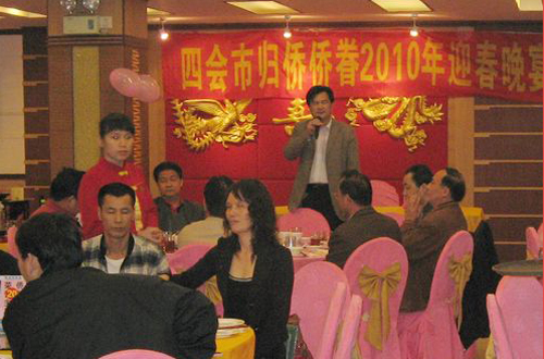 晚宴開始前,在歡樂祥和熱烈的氣氛中,四會(huì)市僑聯(lián)主席雷森榮作了講話。他首先總結(jié)回顧了去年的工作。他說,2009年四會(huì)市僑聯(lián)在市委、市政府的正確領(lǐng)導(dǎo)和上級(jí)僑聯(lián)的關(guān)心指導(dǎo)下,在有關(guān)部門的支持配合下,通過全體僑聯(lián)工作者和歸僑僑眷的共同努力,僑聯(lián)工作取得了喜人的成績(jī):在全國(guó)僑聯(lián)“八代會(huì)”上,四會(huì)市僑聯(lián)榮獲“全國(guó)僑聯(lián)系統(tǒng)先進(jìn)基層組織”榮譽(yù)稱號(hào),僑眷張樹華榮獲“全國(guó)歸僑僑眷先進(jìn)個(gè)人”榮譽(yù)稱號(hào),在廣東省僑聯(lián)“九代會(huì)”上,東城街道僑聯(lián)被評(píng)為“廣東省僑聯(lián)系統(tǒng)先進(jìn)集體”,雷森榮被評(píng)為“廣東省僑聯(lián)系統(tǒng)先進(jìn)個(gè)人”,在肇慶市僑聯(lián)六屆五次全委會(huì)上,四會(huì)市僑聯(lián)被評(píng)為“2009年度肇慶市僑聯(lián)系統(tǒng)信息工作先進(jìn)集體”,分別受到表彰;圍繞中心、服務(wù)大局,成功引進(jìn)兩個(gè)僑資項(xiàng)目到四會(huì)投資落戶;積極參政議政,做好為僑服務(wù),維護(hù)僑益;大力拓展海內(nèi)外聯(lián)誼,密切聯(lián)系海外社團(tuán),加大做好華僑華人新生代的工作;加強(qiáng)信息報(bào)道工作和出版僑聯(lián)刊物,宣傳僑鄉(xiāng)優(yōu)秀文化,做好文化交流;認(rèn)真開展學(xué)習(xí)實(shí)踐科學(xué)發(fā)展觀活動(dòng)和“整作風(fēng)抓落實(shí)”專項(xiàng)活動(dòng),切實(shí)轉(zhuǎn)變工作作風(fēng),強(qiáng)化隊(duì)伍,夯實(shí)基層僑聯(lián)組織建設(shè)。僑聯(lián)各項(xiàng)工作得到了四會(huì)市委、市政府和上級(jí)僑聯(lián)的充分肯定。這些成績(jī)的取得有賴于四會(huì)市委、市政府的重視和關(guān)心,有賴于上級(jí)僑聯(lián)的指導(dǎo),有賴于有關(guān)部門的支持和各鎮(zhèn)(街道)僑聯(lián)的配合,有賴于全體僑聯(lián)工作者和歸僑僑眷的共同努力,雷森榮代表四會(huì)市僑聯(lián)表示衷心的感謝。