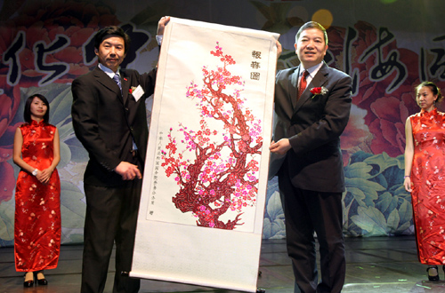 “亞克錫邁”,表演《頂碗舞》的中央民族歌舞團(tuán)舞蹈演員們,首先用維吾爾族語向僑胞問候“新年好”;“扎西德力”,藏族青年歌手阿旺也用藏語向大家拜年,他以一曲動感十足的《快樂西藏》,“把雪域高原的快樂和熱情帶給旅比僑胞”;朝鮮族歌唱演員卞英華,以柔情的朝鮮民謠《桔梗謠》,“獻(xiàn)給了真誠而又熱情的僑胞們”。蒙古族馬頭琴演奏家朝克的《萬馬奔騰》、傣族舞蹈《劭多麗》、《雀之靈》……少數(shù)民族藝術(shù)家們激情歡快的民族藝術(shù)表演,贏得了全場觀眾持久的掌聲,不少觀眾還興奮地起立為演員們叫好,臺上臺下互動氣氛熱烈。