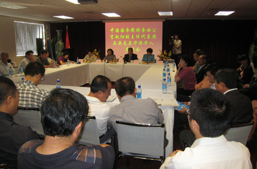 與奧克蘭華僑華人各界人士的座談會(huì)在中國(guó)駐奧克蘭總領(lǐng)館舉行,由總領(lǐng)事廖菊華主持,當(dāng)?shù)貎S團(tuán)、僑校、僑報(bào)負(fù)責(zé)人及專家學(xué)者等約50人與會(huì),大家就共同關(guān)心的奧克蘭華僑華人群體的變化與問題研究、華僑華人身份與國(guó)籍問題、僑胞權(quán)益保護(hù)、華文教育與弘揚(yáng)中華文化、和諧僑社建設(shè)及促進(jìn)中外各領(lǐng)域交流和中國(guó)和平統(tǒng)一大業(yè)等,廣開思路、暢所欲言,深入交換看法和意見,積極為海外僑務(wù)工作的科學(xué)發(fā)展建言獻(xiàn)策。