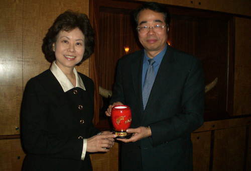 中新網(wǎng)3月2日電 2月28日中午,率“文化中國(guó) 四海同春”藝術(shù)團(tuán)在美東地區(qū)訪演的國(guó)務(wù)院僑辦副主任許又聲在駐紐約總領(lǐng)事彭克玉及夫人陪同下,應(yīng)邀出席了前美國(guó)勞工部長(zhǎng)趙小蘭及其父親趙錫成博士舉行的午宴。