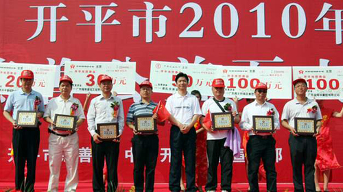 3月3日,開平市在城市廣場舉行2010年慈善公益萬人行活動(dòng)起步儀式,同時(shí)表彰了一批慈善活動(dòng)作出突出貢獻(xiàn)的海外僑胞、港澳同胞和海外社團(tuán)。據(jù)悉,今年以來,該市慈善會(huì)共收到來自海外鄉(xiāng)親、社團(tuán)的捐款1366萬多元,其中海外鄉(xiāng)親捐款達(dá)1297萬元,涌現(xiàn)旅港鄉(xiāng)親譚逢敬先生捐款800萬元,譚華正先捐款200萬元等一批突出貢獻(xiàn)的熱心人士。開平市委書記馮立堅(jiān)在慈善公益萬人行活動(dòng)上,接受了海外僑胞和港澳鄉(xiāng)親熱心人士支票捐贈(zèng)儀式,并代表開平市慈善會(huì)向譚氏宗親會(huì)、香港開平同鄉(xiāng)會(huì)、澳門開平同鄉(xiāng)會(huì)。旅港鄉(xiāng)親譚逢敬、譚華正、梁家熹、譚福添、吳漢良、譚錦濠、譚景彬、譚凱銘等善長仁翁頒發(fā)慈善紀(jì)念牌匾予以表彰。
