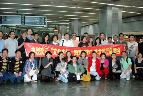 中新網(wǎng)3月5日電 據(jù)巴西《南美僑報》報道,“文化中國·四海同春”赴南美藝術(shù)團3日晚間平安抵達(dá)本次訪演的最后一個城市——巴西里約熱內(nèi)盧,在當(dāng)?shù)貒H機場受到了里約華僑華人的熱烈歡迎,國僑辦副主任馬儒沛和藝術(shù)團的演員們與僑胞們在機場合影留念。