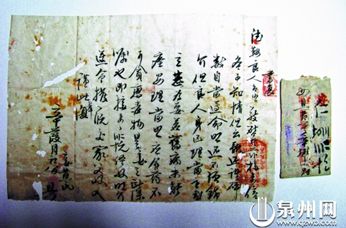 上圖為泉州市檔案館收藏的最早的僑批,系1911年十一月初八,一名晉江安海人的妻子寄給遠(yuǎn)在菲律賓的丈夫的“回批”(回信),信中還寫到將丈夫寄來的錢都用在了哪里!盎嘏笔莾S批的一種,由于是由故鄉(xiāng)人寄往海外的回信,所以目前國(guó)內(nèi)數(shù)量不多,更加珍貴。(葉舒雯 陳一妮)