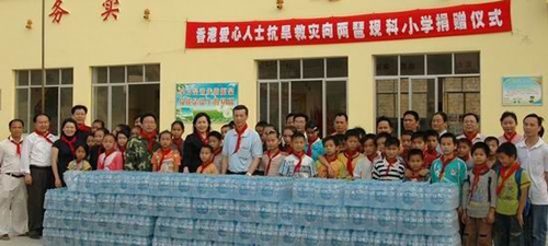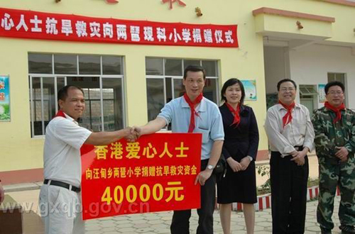 近段時間,廣西百色市右江區(qū)旺甸瑤族鄉(xiāng)兩琶村小學(xué)遭遇特大旱災(zāi),學(xué)校蓄水池斷水多日,引起了社會各界的廣泛關(guān)注,也牽動了廣西壯族自治區(qū)、百色市、右江區(qū)僑辦領(lǐng)導(dǎo)的心。經(jīng)廣西僑辦搭橋牽線,香港謝家忠、葉林慧儀、原秋明等愛心人士,心系瑤寨小學(xué)生,千里奔瑤鄉(xiāng),將一縷縷清澈的泉水運送到了旺甸瑤族鄉(xiāng)兩琶村小學(xué)。