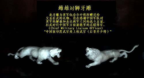 據悉,此次捐贈儀式交接的一對印度象牙精雕的雌雄獅子,是1943年由英軍元帥蒙巴頓的辦公室主任鮑威爾中將贈送給杜武將軍的私人禮物,意在感謝中國遠征軍于1942年4月在緬甸仁安羌解救7000名被日軍包圍幾乎彈盡糧絕的英緬軍官兵和500名西方國家的記者、教師和傳教士。這對牙雕曾輾轉于印度,重慶,南京,渥太華,卡爾加里。歷經68年的蹉跎歲月,如今由侵華日軍南京大屠殺遇難同胞紀念館收藏并展出。這對牙雕是中國抗戰(zhàn)史上非常稀有的歷史文物,是中國遠征軍英勇作戰(zhàn),解救英軍的歷史佐證,具有較高的歷史價值。(許嘉明)