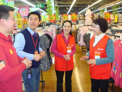 在超市負(fù)責(zé)人的帶領(lǐng)下,全體黨員分別在服飾區(qū)、生鮮區(qū)、果蔬區(qū)、停車場進(jìn)行了3個小時的服務(wù)體驗活動。