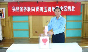 中新網(wǎng)4月22日電 據(jù)福建僑聯(lián)網(wǎng)消息,天災(zāi)無情,人間有愛。4月21日上午,福建省僑聯(lián)積極響應(yīng)福建省委組織部、省直機(jī)關(guān)工委的號(hào)召,舉行了向青海玉樹地震災(zāi)區(qū)捐款的儀式。