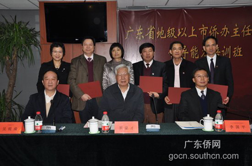 中新網(wǎng)4月23日電 據(jù)廣東僑網(wǎng)消息,4月22日上午,廣東省地級(jí)以上市僑辦主任(局長)領(lǐng)導(dǎo)能力培訓(xùn)班舉行結(jié)業(yè)典禮。原全國政協(xié)副主席、北京大學(xué)政府管理學(xué)院院長羅豪才出席了結(jié)業(yè)典禮并與全體學(xué)員合影留念。