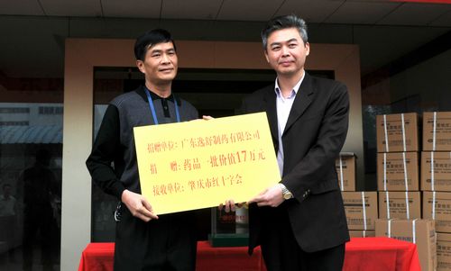 廣東逸舒制藥有限公司董事長黃慶文出差在外,當他接到市僑聯(lián)的倡議后,第一時間表達了向玉樹災區(qū)捐款捐物的意愿。他急災區(qū)群眾之所急,立即組織企業(yè)員工加班加點,加量生產(chǎn)大批災區(qū)急需的抗生素等藥品,并特地委托公司總經(jīng)理黃慶雄參加捐贈儀式捐贈藥品。儀式上,肇慶市僑聯(lián)主席黃志堅向廣東逸舒制藥有限公司及其全體員工對積極參與捐贈活動表示衷心的感謝;他指出,災害無情,人間有愛,我們雖遠離玉樹,但與災區(qū)人民感同身受,此刻奉獻一份愛心,盡一份綿薄之力是我們情系災區(qū)最好的表達方式。隨后,黃慶雄總經(jīng)理代表公司把藥品和善款親自交到市紅十字會主任徐永飛手中,為感謝廣東逸舒制藥有限公司的善舉,市紅十字會也回贈了“紅十字愛心單位”牌匾。