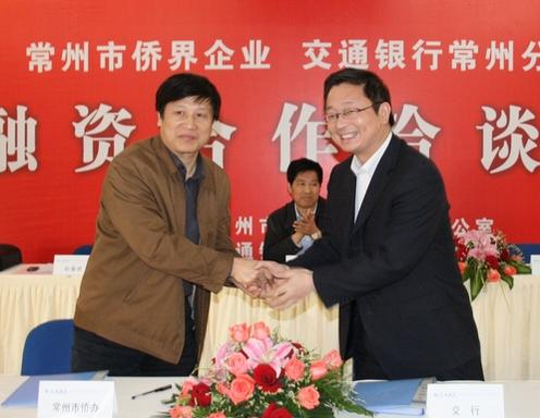 會上,市僑辦副主任孫春武與交行常州分行副行長周毅平代表雙方簽訂了合作協(xié)議;交通銀行常州分行公司部總經(jīng)理馬時(shí)雄分別與常州宏屹綠環(huán)節(jié)能強(qiáng)材料有限公司、江蘇艾信蘭生物醫(yī)藥有限公司、常州聯(lián)興常泰國際貿(mào)易有限公司簽訂了信貸合作意向協(xié)議。