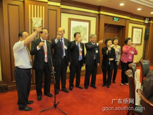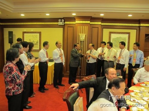 中新網(wǎng)5月10日電 據(jù)廣東僑網(wǎng)消息,5月7日晚,廣東省僑辦主任吳銳成、副主任黎靜在北京京西賓館設(shè)宴歡迎參加第五屆世界華僑華人社團(tuán)聯(lián)誼大會(huì)的部分僑領(lǐng)。