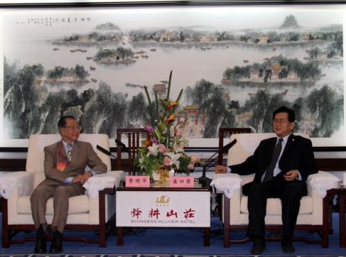 中新網(wǎng)5月13日電 據(jù)山東省僑辦網(wǎng)站消息,5月11日晚,山東省人大副主任崔曰臣在舜耕山莊會(huì)見(jiàn)了華僑華人回家“觀世博•游山東”考察團(tuán)一行。
